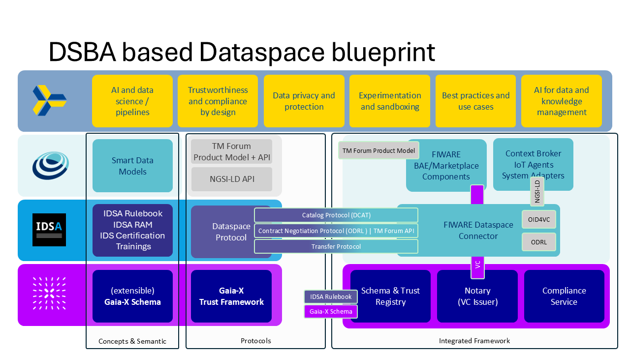 Gaia‑X’s mission as a trust framework for data spaces maps directly onto these concepts, offering a governance layer for issuing and validating Verifiable Credentials (VC) and managing Trust Anchors and trusted issuers.